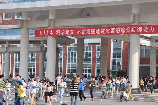 演练共包括预警报警、科学避震、组织逃生等多个环节。学院4000余名师生员工参加了本次演练。整个演练活动紧张有序,有条不紊,全体师生员工互相帮助,均能做到安全撤离、有序集合,没有发生任何互相推挤或踩踏事故,从警铃响起到人员撤离至安全区域,全过程仅用了3分钟。