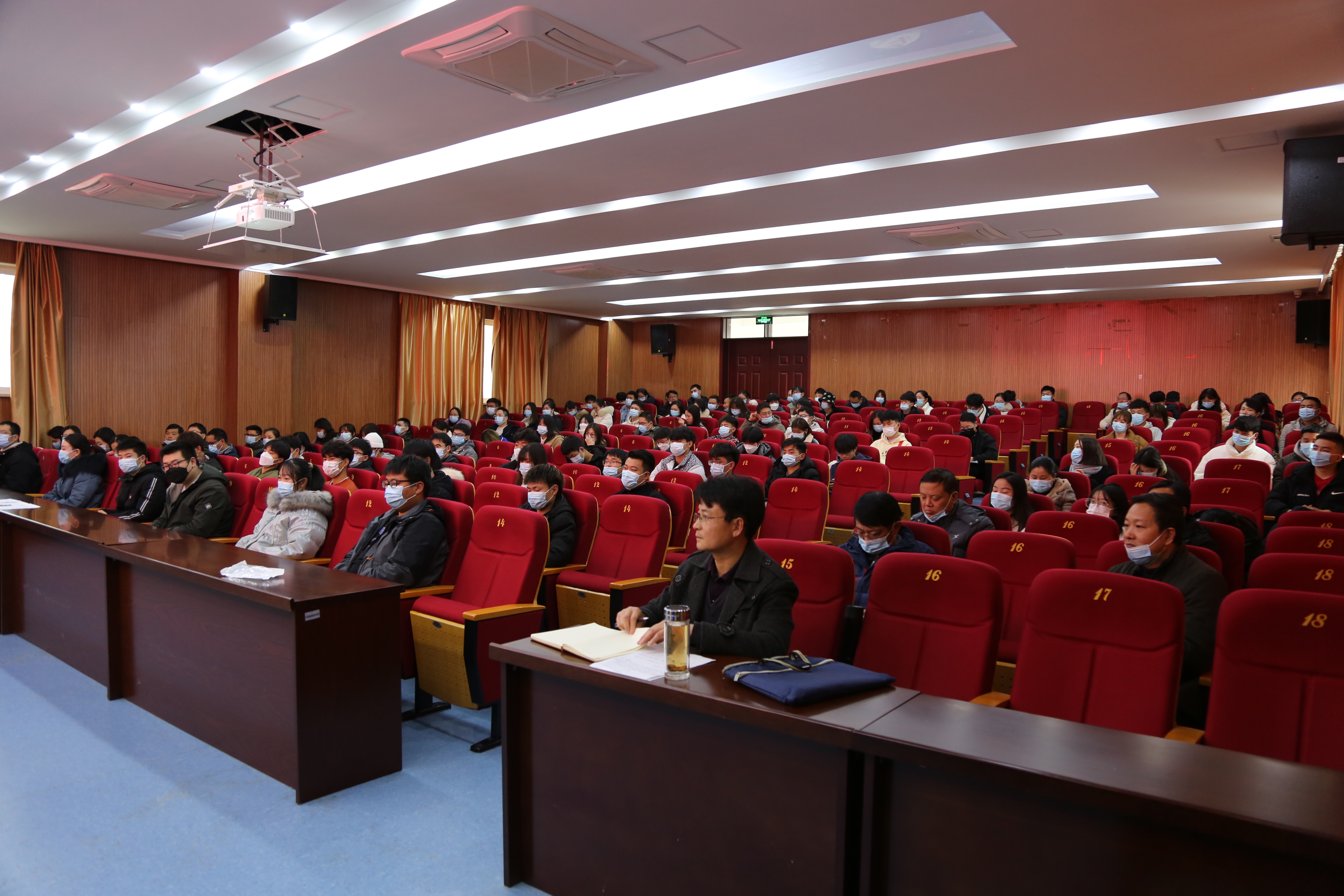办公室、学生工作处、安全保卫处全体成员、团委、各学院支部书记、辅导员及学生代表参加了本次讲座。