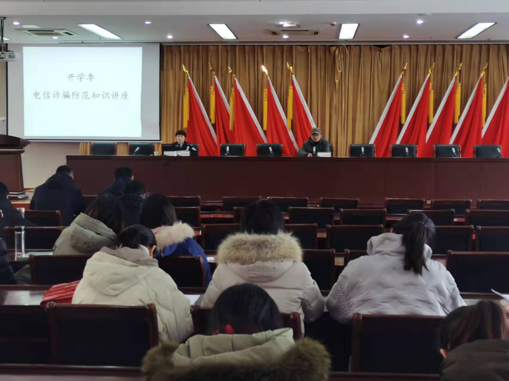 2022年2月18日,安全保卫处联合学生工作处在学校综合楼5楼会议室,开展防范电信网络诈骗知识讲座,讲座有滁州市南谯公安分局徐婷婷主讲,学校全体辅导员、安全保卫处、学生工作处等部门人员参加了讲座。
