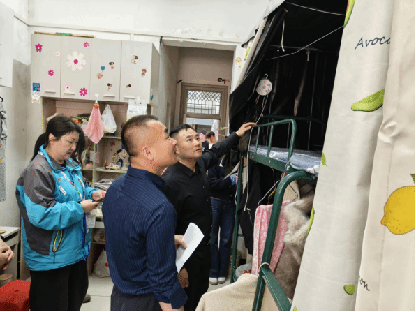 检查小组深入学生宿舍楼,重点聚焦宿舍用电安全、管制刀具、消防安全等关键领域进行逐一排查。