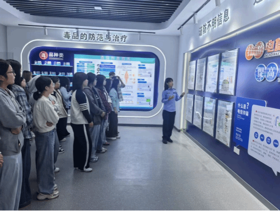 核心学习环节在警示教育厅展开。工作人员先组织新生集中观看电诈预警专题视频,结合高校高发的 “刷单返利”“冒充客服” 等典型案例,拆解诈骗套路与防范要点;随后引导新生参观厅内反电诈、反恐、反邪教、毒品防范四大主题展板,结合内容讲解各类安全风险的识别与应对方法,同时借助仿真毒品模型,强化新生 “珍爱生命、远离毒品” 的意识。