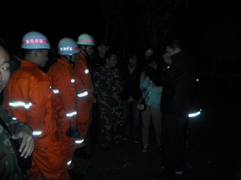 学院汪上副院长、滁州市公安局吴局长、开发区公安分局陈局长、会峰路派出所费所长及时赶到现场指挥搜救工作。消防支队、会峰路派出所干警参与搜救工作,共同研究搜救方案,公安机关通过卫星定位系统进行查找定位,但由于山区空旷,信号极差,无法准确定位,只能将目标定位在一平方公里之内,又采取喊话和在山顶燃放烟火的方式,为被困学生指明方向。经过全体搜救同志的努力,最终将被困山中已达六个小时的四名学生成功解救。