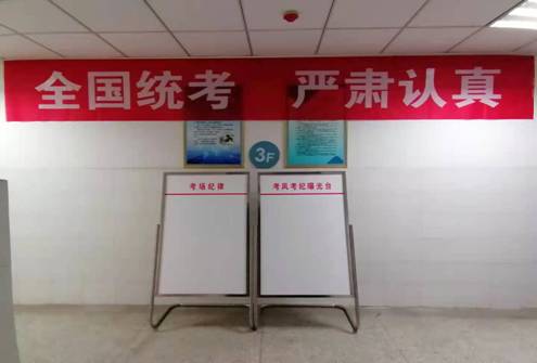 为确保考试工作安全顺利,学校按照标准化考场设置,机考及纸质考场均按照“30人、六排五列、S形、单人、单桌、反向”要求布置,考场前、后方设置手机存放区及物品存放区,并配发手机存放袋,严禁考生携带手机参加考试。考场的标准化布置和管理,对有效遏制各类考试违规行为、加强考生诚信体系建设起到积极作用。