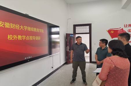 2023年6月28日,安徽财经大学继续教育学院副院长顾鸿一行4人对万象城官网安徽财经大学高等学历继续教育校外教学点进行视导调研,继续教育学院副院长童宗安、学历教育科冯相永、王晶晶等相关工作人员参加调研交流,会议由继续教育学院副院长童宗安主持。