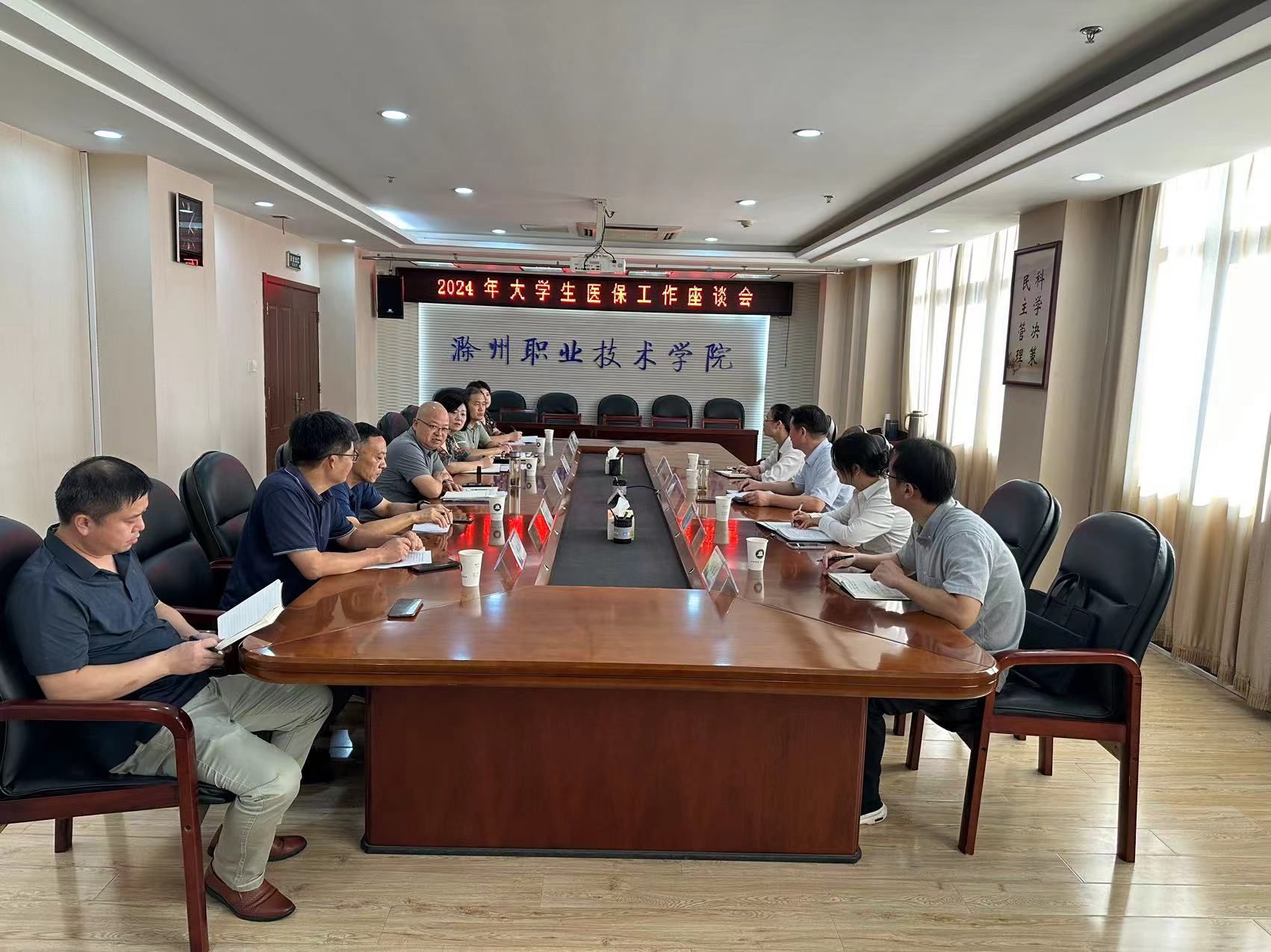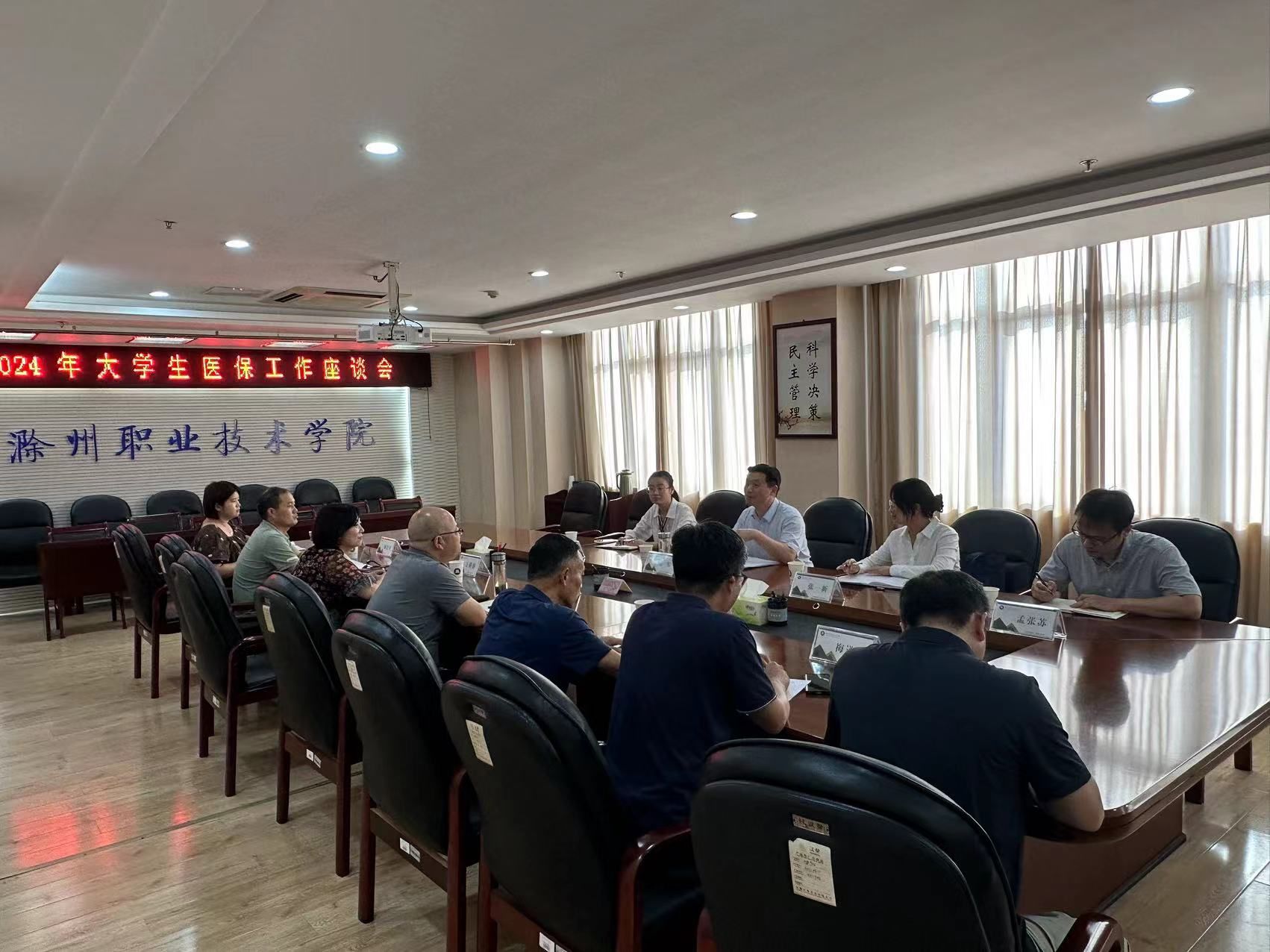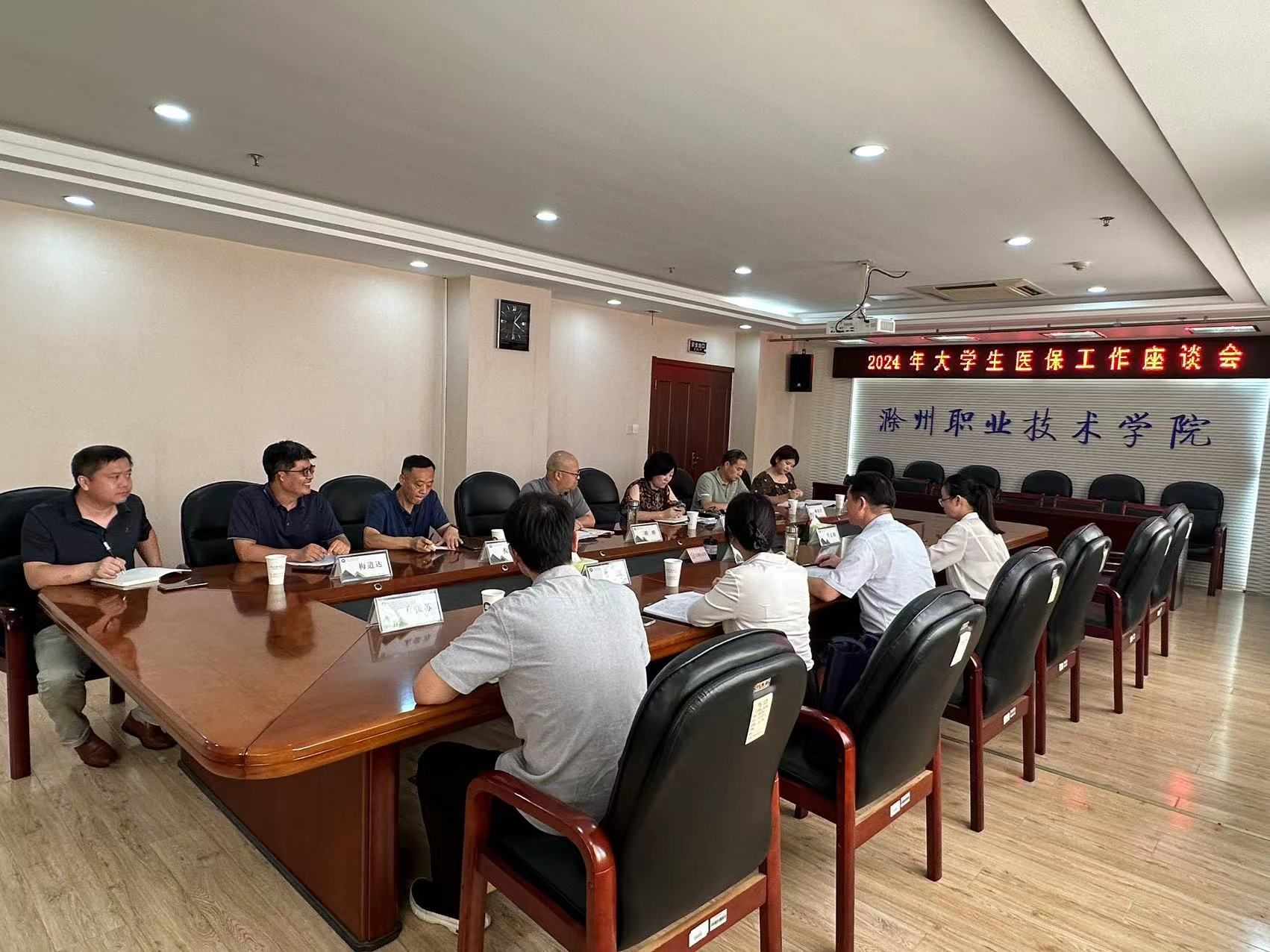 9月20日下午,滁州市医疗保障局局长吴军一行莅临万象城官网调研,就大学生参保工作召开座谈会。校党委委员、副校长胡凼热情接待了来访客人并参加座谈会。