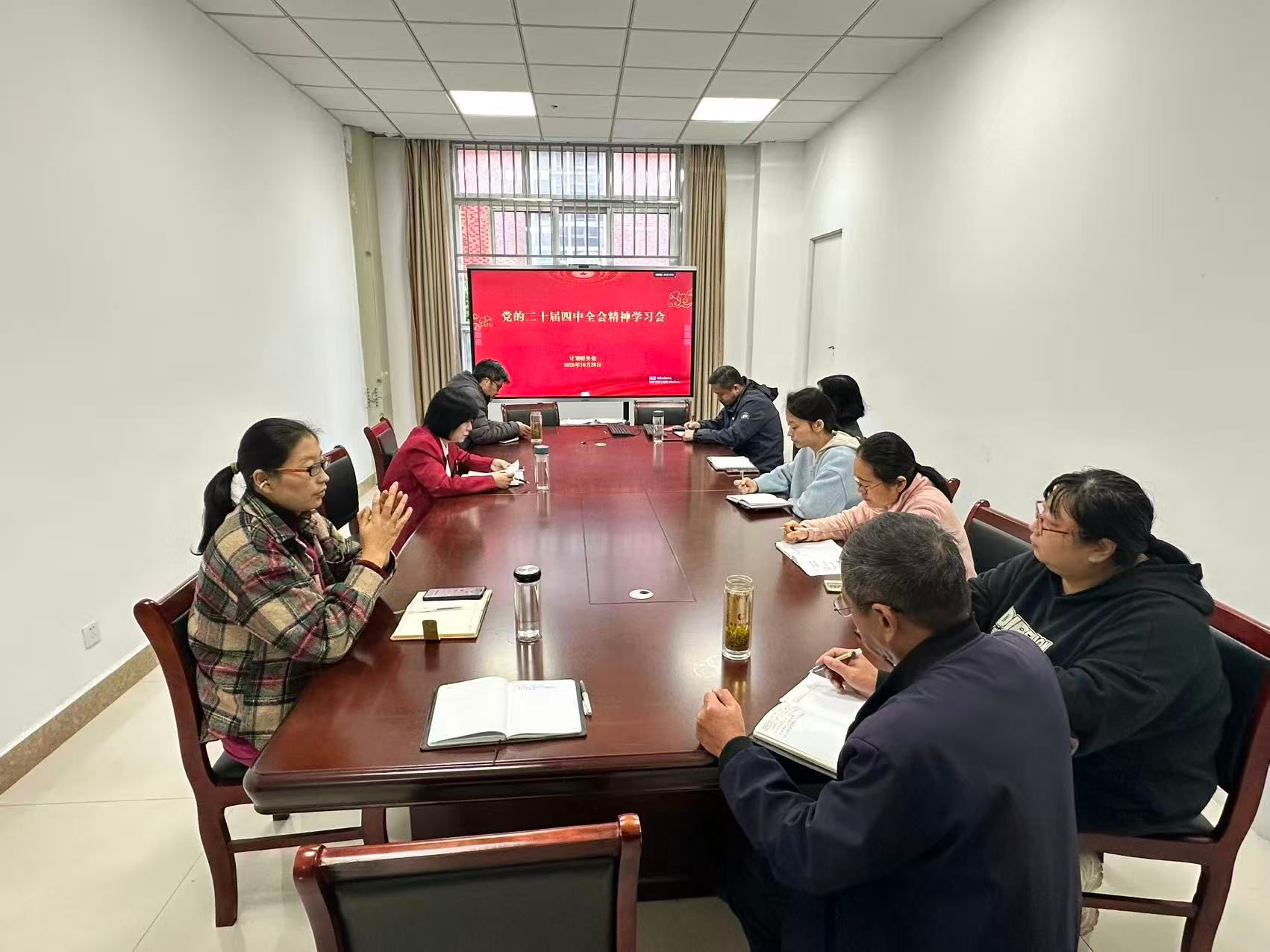 为深入学习贯彻党的二十届四中全会精神,教育引导全体党员干部把思想和行动统一到全会精神上来,10月28日,计划财务处在综合楼132会议室召开专题学习会议,会议由计划财务处处长王蓓蓓主持,全处工作人员参加。