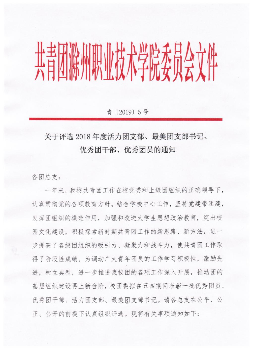 201905关于评选2018年度活力团支部、最美团支部书记优秀团干部、优秀团员的通知