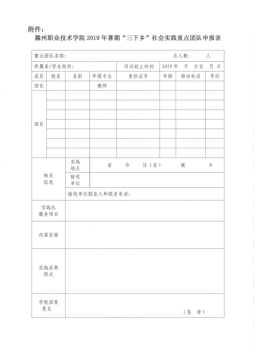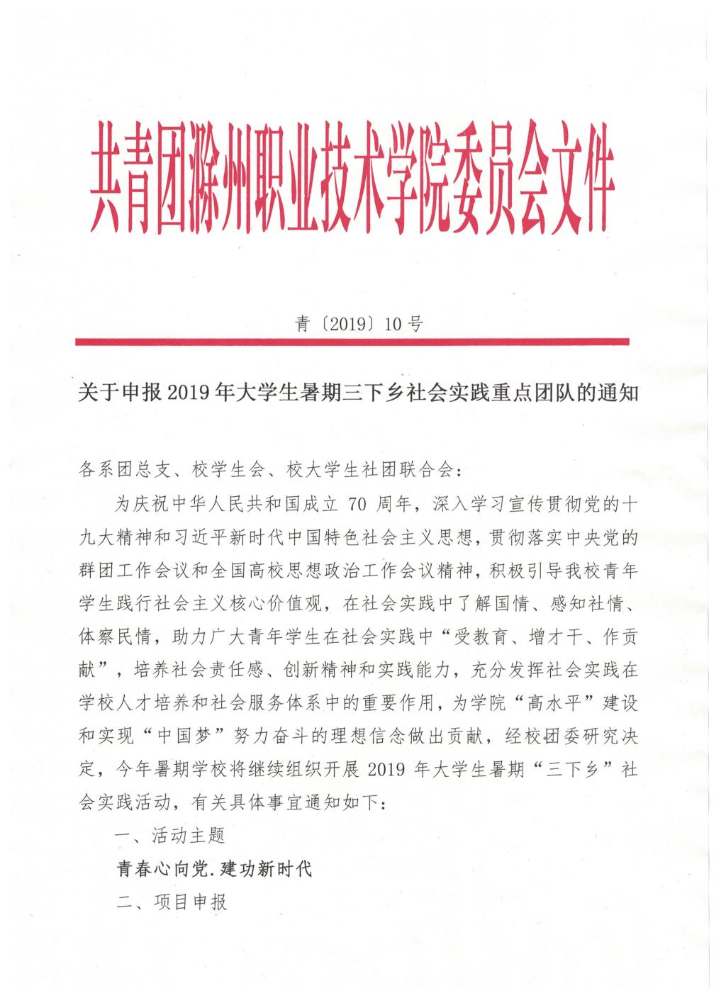 201910 关于申报2019年大学生暑期三下乡社会实践重点团队的通知