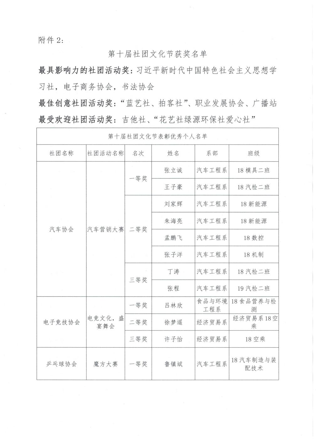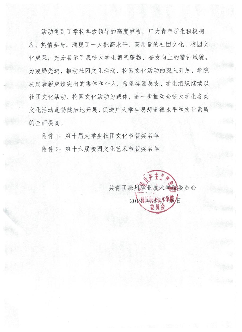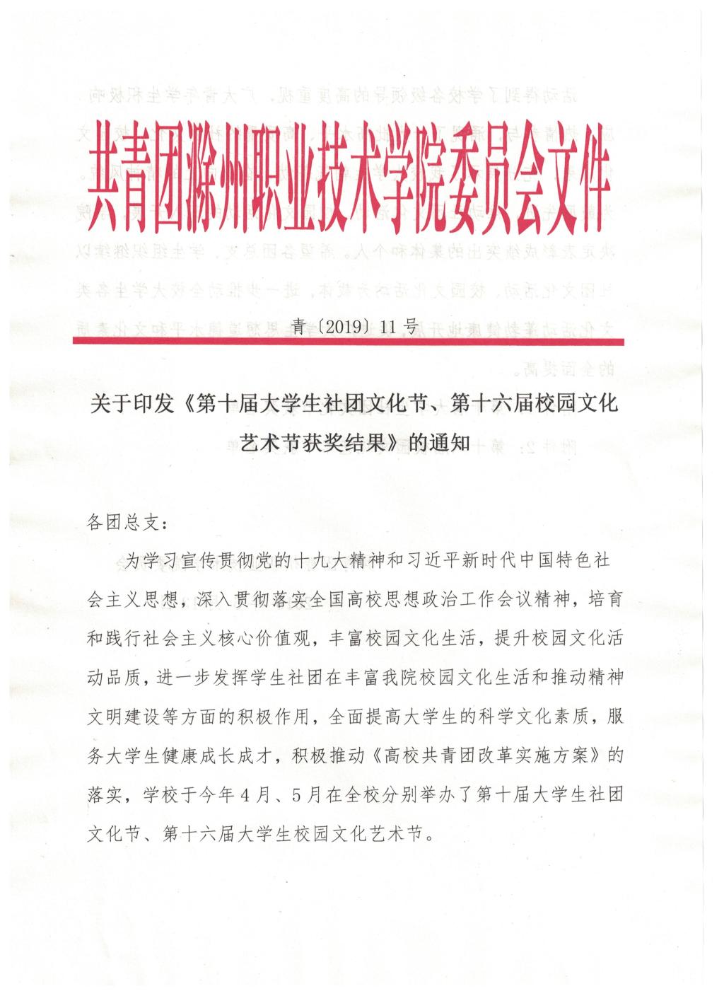 201911 关于印发《第十届大学生社团文化节、第十六届校园文化艺术节获奖结果》的通知
