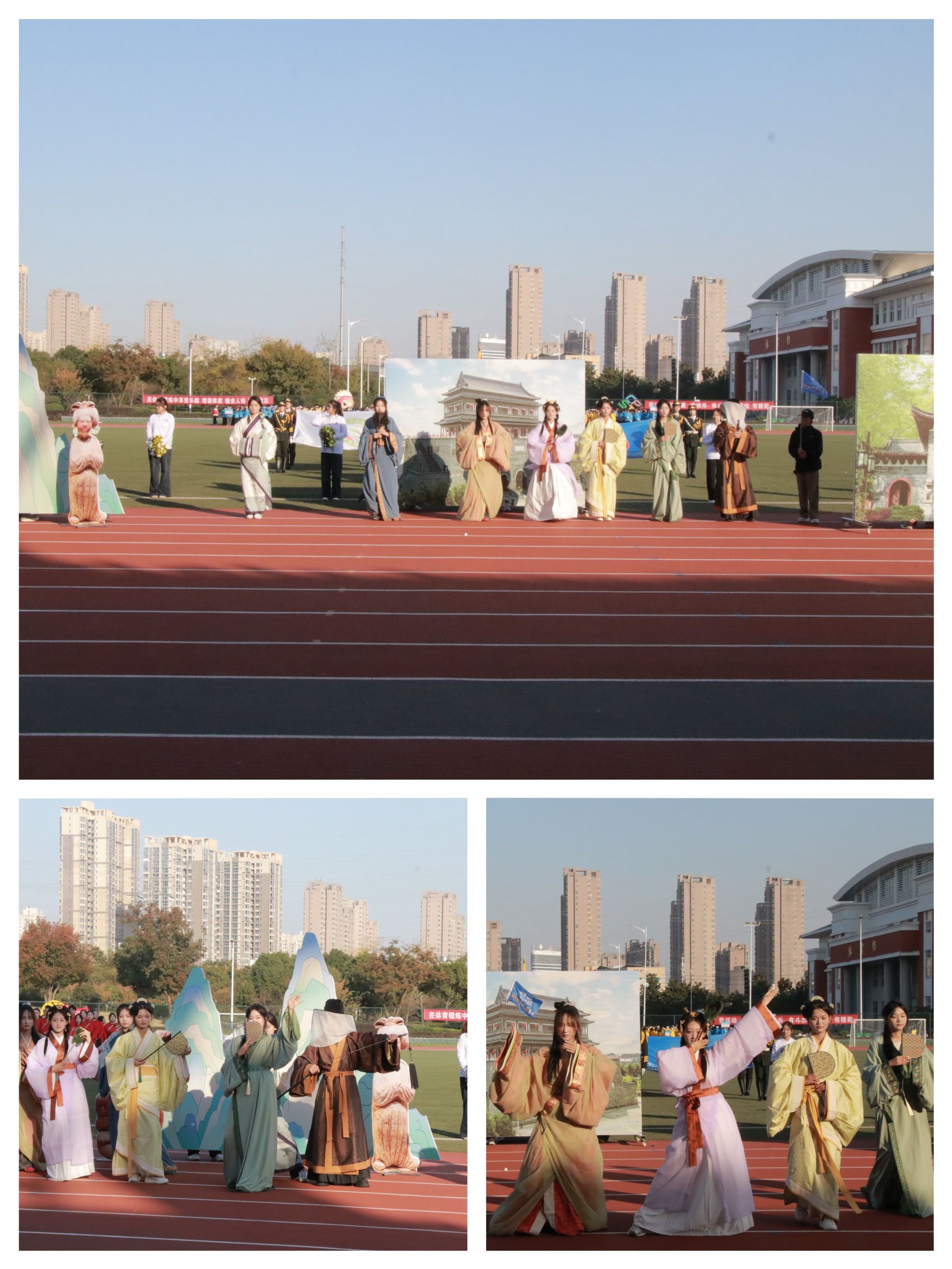 开幕式上,管理学院精心编排的汉服走秀表演颇具亮点,以独特的文化创意与真挚演绎获得现场关注。身着襦裙、曲裾等传统汉服的同学们,衣袂飘飘尽显灵动雅致,冠带整齐不失端庄气韵,将传统服饰的形制之美与文化底蕴娓娓展现。大家迈着整齐的步伐,伴随悠扬婉转的古典乐曲缓缓前行,每一个姿态都饱含对中华优秀传统文化的尊崇与传承,每一个眼神都传递着青年一代的活力与自信。这场融合文化传承与青春创意的表演,生动诠释了中华优秀传统文化的独特魅力,彰显了管理学院学子的文化素养与创新精神,赢得现场观众的阵阵掌声。