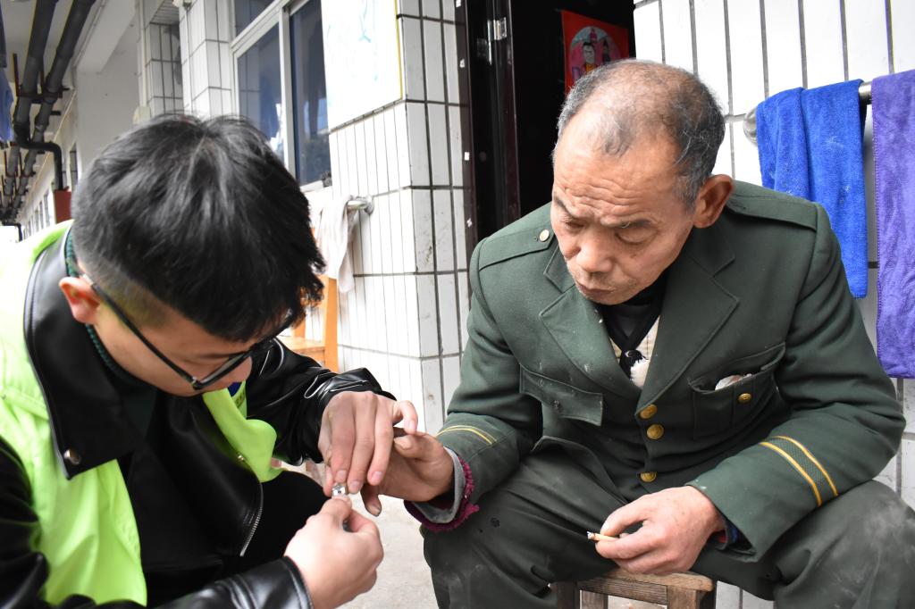 下午两点,“小青亭”志愿者们如期而至,志愿者们先与老人们拉起了家常,询问他们的身体、日常生活、饮食起居等情况,用心倾听他们的往事,逐渐拉近老人们与志愿者的心里距离,再用随身带来的指甲剪为老人们修剪指甲。此外,在朱婷婷书记的安排下,志愿者为老人们送去新买的鞋子并为他们穿上。“小青亭”志愿者青色的身影穿梭在敬老院内,一时间志愿者们已经成为敬老院一道流动的亮丽风景。最后在离开前“小青亭”志愿者们衷心祝愿敬老院的每一位老人身体健康、岁岁平安。