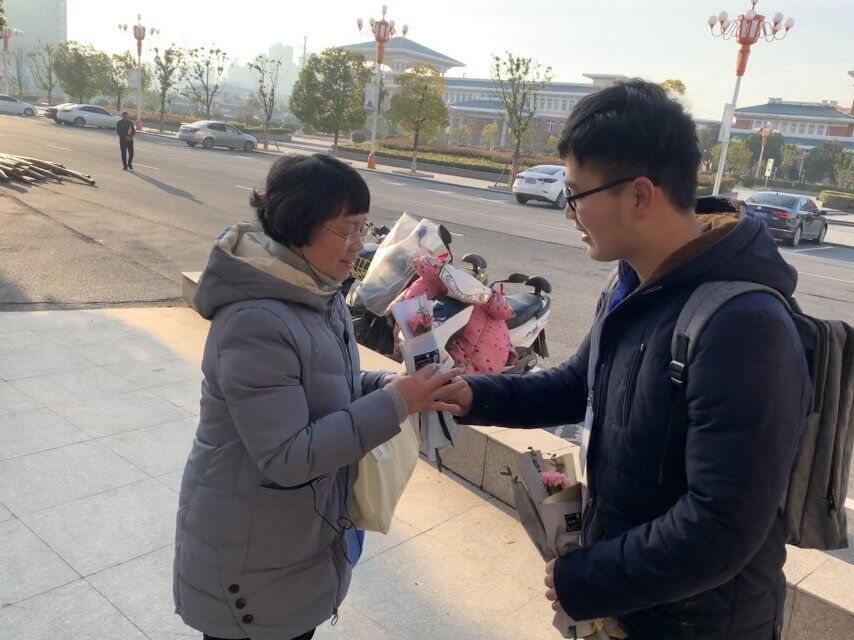早晨7点,志愿者在各系部楼前和校车停滞点等侯女老师们的到来。志愿者每个人的手中都精心准备了几支康乃馨,因为它的花语是爱,魅力和尊敬之情。每朵花中都包含着我们每个人沉甸甸的感激之情,希望在第一时间为学校女教师们送上节日的祝福。活动过程中志愿者们热情满满,不少女老师都收到了这份清晨的祝福,老师们也带着甜甜的笑容回应着志愿者们。在活动结束时,每个志愿者的脸上都洋溢着开心的笑容,使早晨的校园沉浸在一片融洽、和谐、欢乐的氛围中。