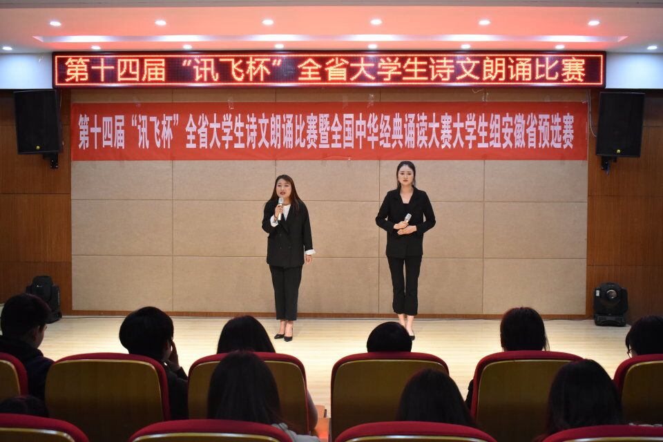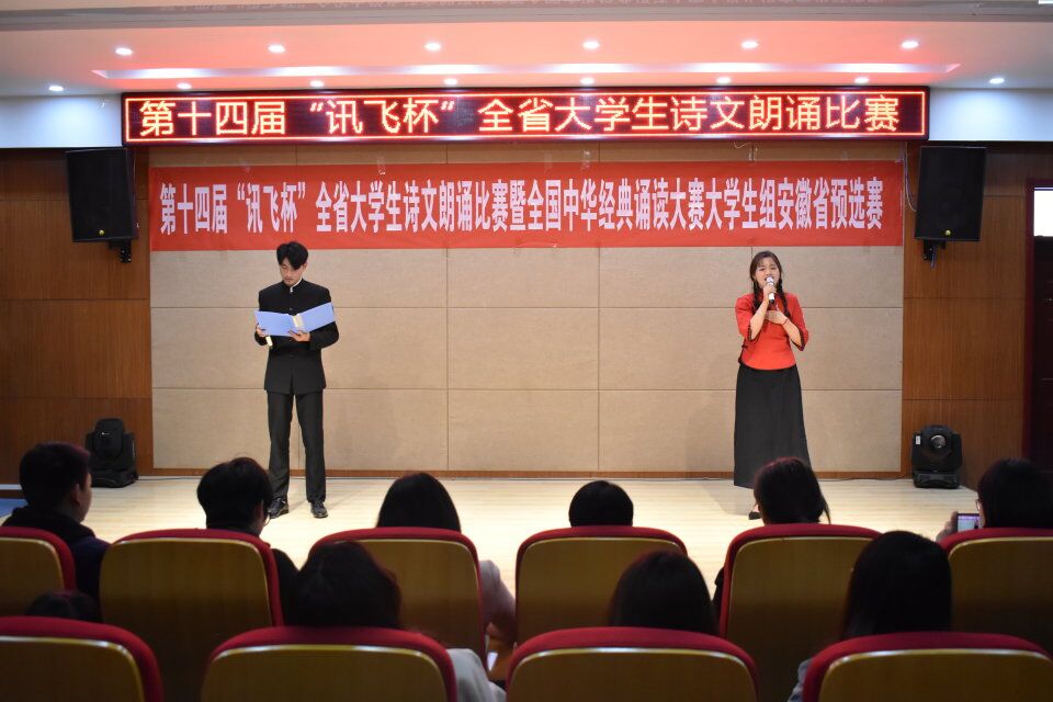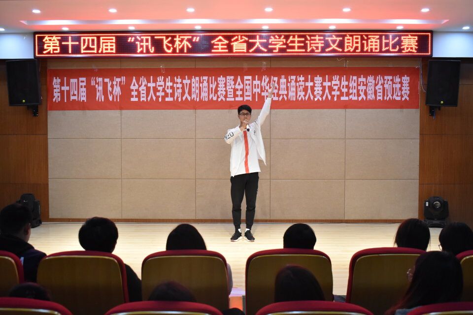 4月3日下午,第十四届“讯飞杯”全省大学生诗文朗诵比赛暨全国中华经典诵读大赛大学生组安徽省预选赛allwincity万象城官方网站校内选拔赛在南阶203成功举办。校团委书记朱婷婷、各系团总支书记、清风文学社指导老师陶会平受邀担任本次比赛的评委,200余名学生一同观看了比赛。