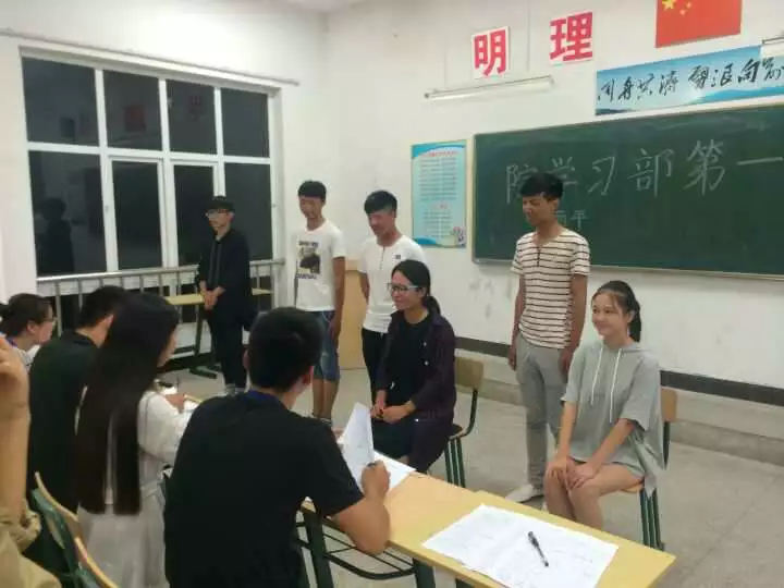 各部门笔试于9月24日在学院各教室同时进行;第一轮面试于9月27日中午举行,加试时间于10月9号的第二轮面试前,由院学生会各部门根据不同情况自定。截至10月9号院学生会招新工作圆满结束。
