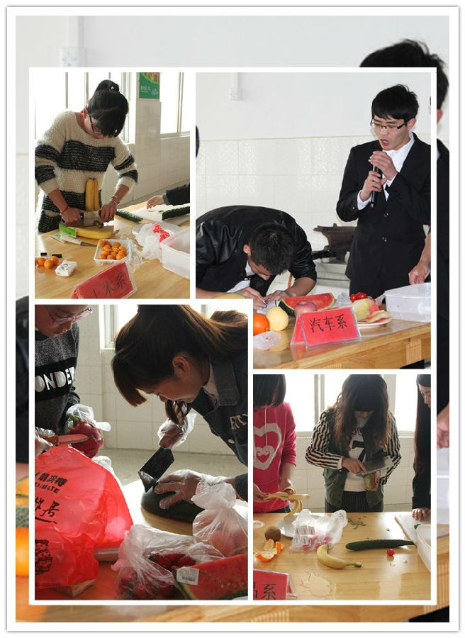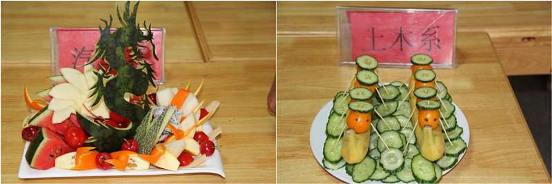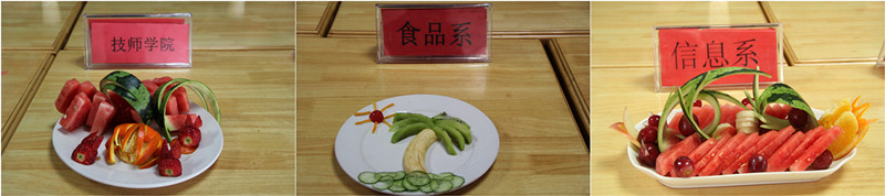 4月17日下午,第三届大学生美食节系列活动之“倾国倾城”水果拼盘大赛在新食堂三楼举行,来自全院各系的八支代表队参加了比赛。来自食品与环境工程系和后勤服务公司的老师担任了此次比赛评委。