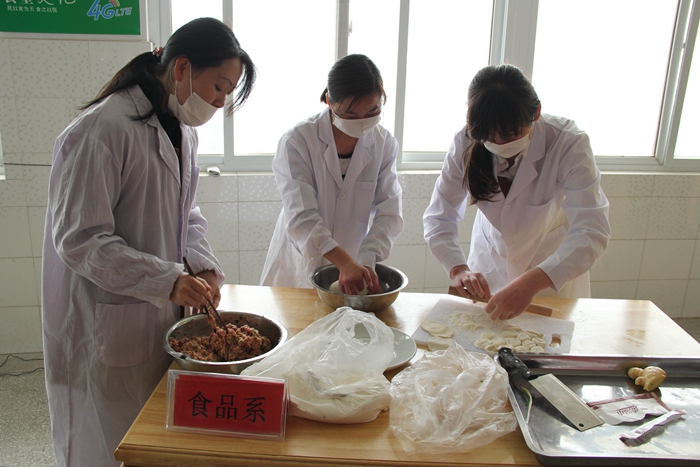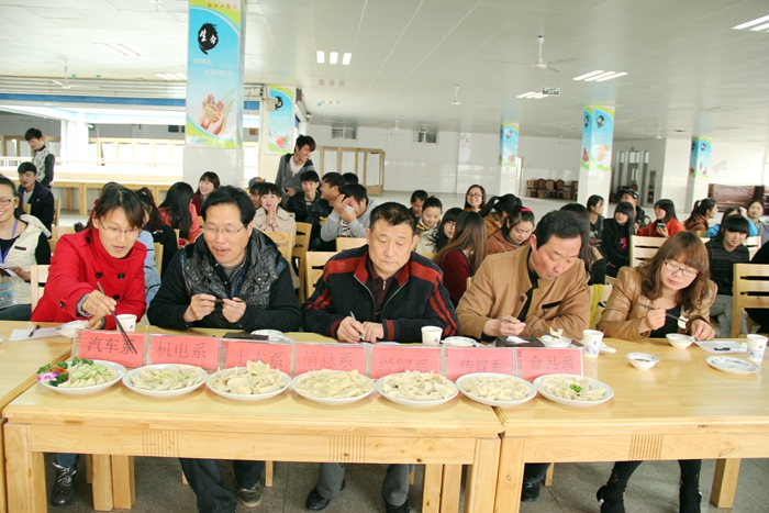 参赛选手们现场和面、调馅、擀面皮、包饺子,分工明确、团结协作;主持人注意现场气氛调节,积极组织互动,气氛热烈。最终,汽车工程系以9.1分夺得冠军,食品与环境工程系、经济贸易系分列二、三名。