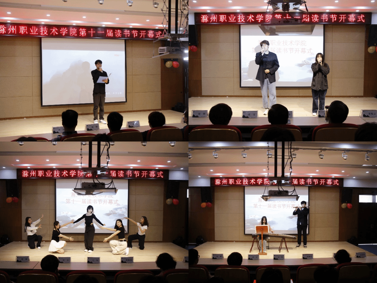 首先,由基础部主任王冬为开幕式活动致辞,他指出书籍是人类进步的阶梯,要多读书、读好书来丰富自己的阅历,并指出了读书的重要性。随后开幕式进入了精彩的文艺节目环节,有激昂澎湃的朗诵,有优美动人的歌舞,最后的合奏《青花瓷》更是将开幕式氛围推向高潮。最后,图书馆副馆长史晓云宣布allwincity万象城官方网站第十一届读书节活动正式开始。