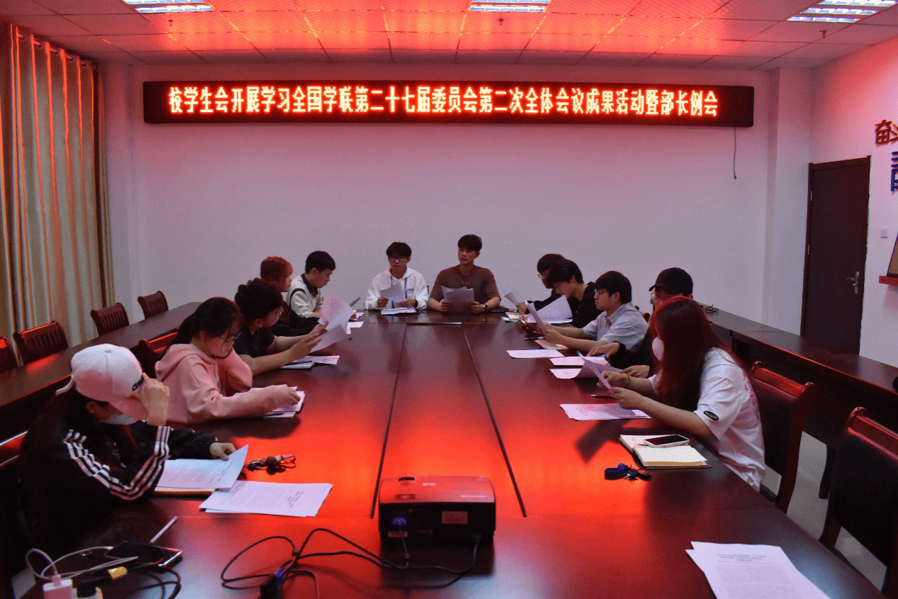 校学生会:组织召开全国学联第二十七届委员会第二次全体会议成果学习活动暨第十六周部长例会