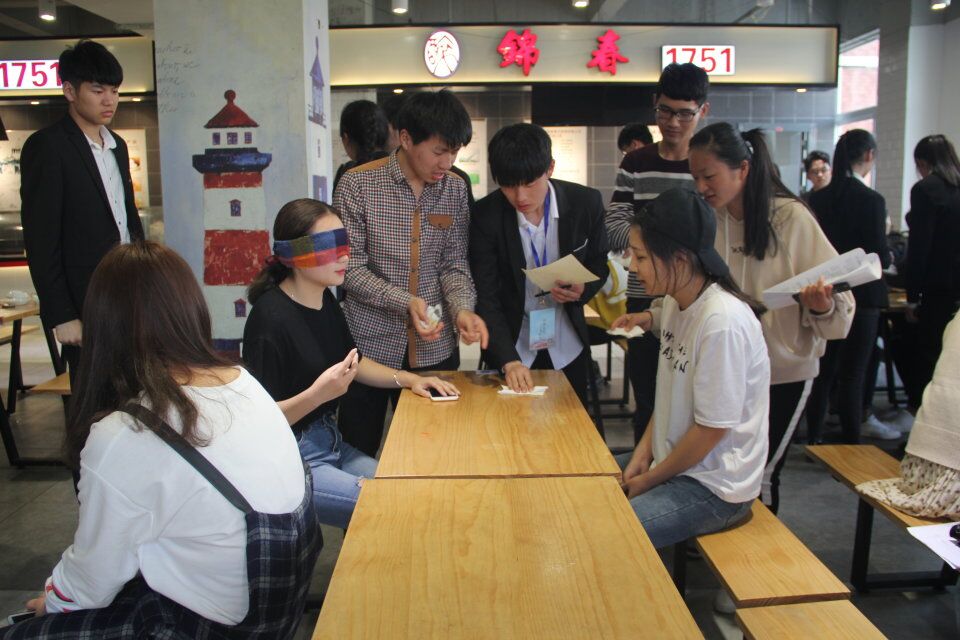 活动的主要形式是两人一队,一人喂食描述食物的特征一人蒙住双眼猜食物的名字,选手们猜对食物的名称方可加分,最终成绩为两人累计之和。参赛队伍展示了良好的默契性,往往述说者刚开始描述就能猜到食物名。来自汽车系、互联网学院、传媒系的同学分别夺得桂冠。