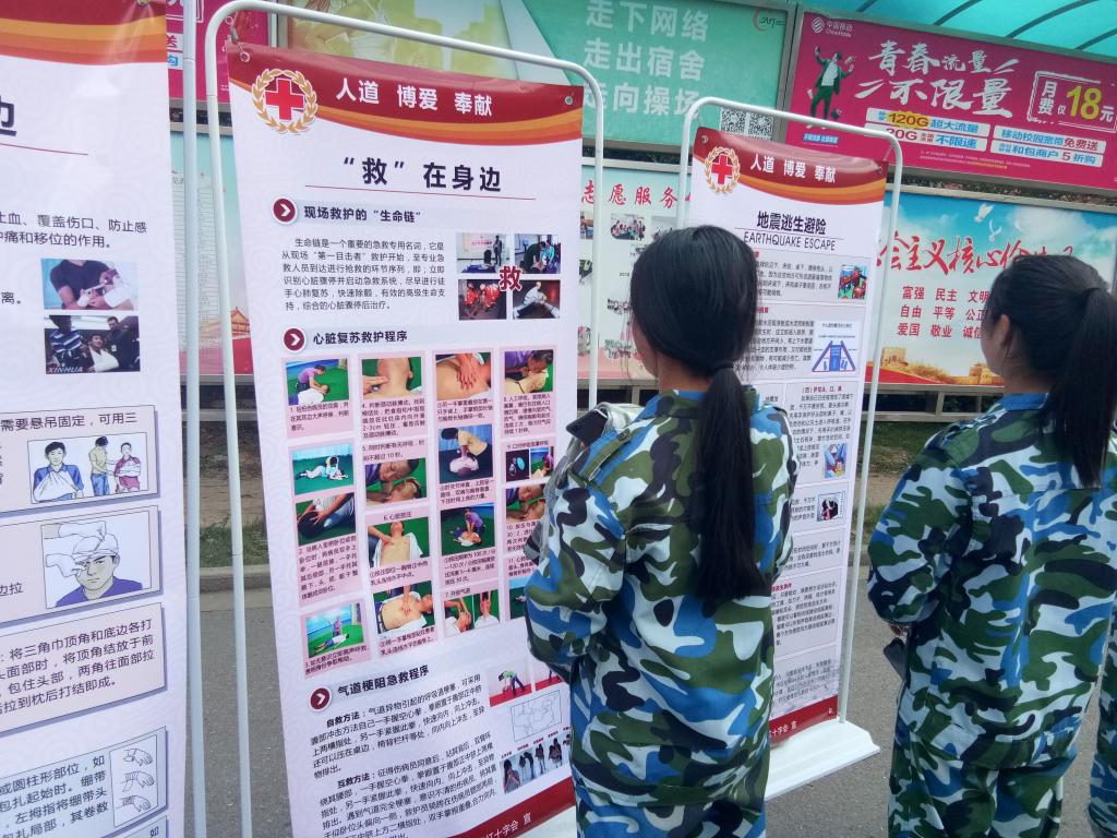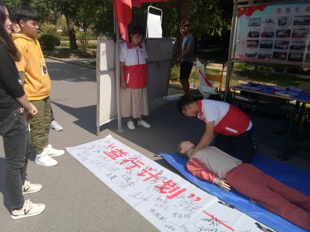为进一步增强万象城官网青年学生的应急情况处置能力,使学生掌握正确的急救、互救、自救技能,为切实增强学生应急意识和应对突发事件的能力,2018年9月27日,allwincity万象城官方网站红十字会在女生宿舍一号楼下开展了“益行计划”——“益”起学急救 “救”在身边应急救护知识宣传活动。