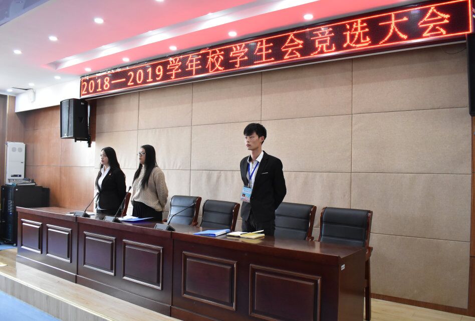 为了给学生干部队伍注入新的活力,能更有效地开展学生工作,实现学生干部新老交替,保证学生组织工作的连续性。2018年10月10日,2018——2019学年校学生会竞选大会在南阶205教室举行,校学生会主席团、团委干事负责人、大学生社团联合会主席、青年传媒中心负责人、各系学生会主席及校学生会全体成员参加了此次大会。