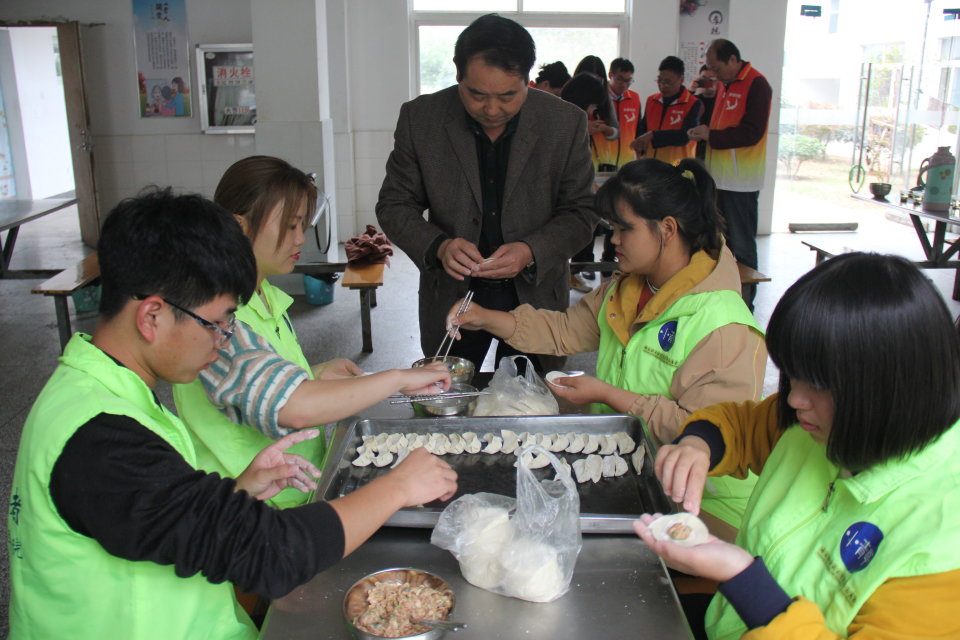下午志愿者们在校门口集合,清点人数强调注意事项后,前往目的地。志愿者们将包饺子的食材带到敬老院,老人们听到志愿者们的声音,纷纷出来迎接。看到志愿者手里拎着饺子馅、饺子粉,老人们露出欣喜的笑容。来到敬老院后,很快志愿者都忙活了起来,志愿者们两组行动,一组包饺子,分工有序、配合默契,虽然造型个性,但却心意满满;一组陪老人,拉家常,嘘寒问暖,一言一语中透露着对老人们浓浓的关爱。