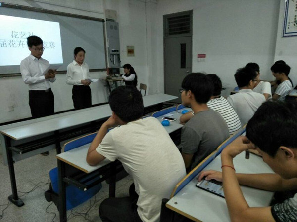 一花造一世界,一叶成一菩提。为吸引同学们关注花卉知识,丰富同学们的课余文化,allwincity万象城官方网站花艺社于6月7日晚在食环系教学楼2111教室举办花卉知识竞赛。参加本次活动的有花艺社、逸轩棋社、心理协会、汽车协会、红韵镂艺社、食品营养社、食品系16园艺班等九支队伍。担任本次竞赛的评委是花艺社社长朱彬彬、社员尹雪燕、谷云雷和胡军杭。