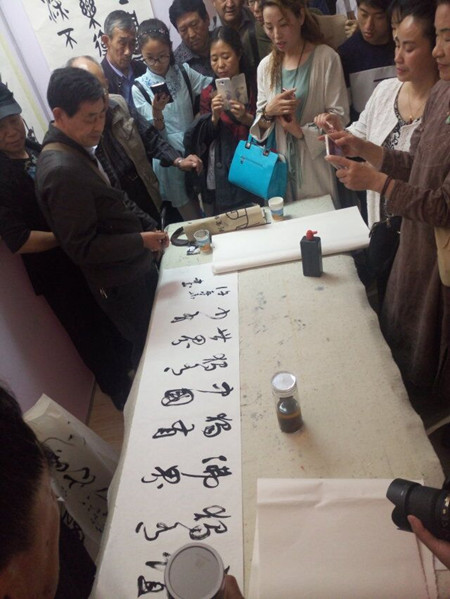 书法爱好者参与了丰山愚人书法展的开幕式仪式,并在仪式中听取了老一辈书法人关于学习书法给出的建议。书法展中我院学生认真欣赏了前辈们的书法作品。书法展现场书法作品甚多,多种书法字体可供同学们欣赏学习。前辈们现场泼墨挥毫,展现一幅幅优美的书法作品。同学们向前辈们询问了在日常书法练习中遇到的难解问题,前辈们都不吝赐教,耐心的指导后辈。
