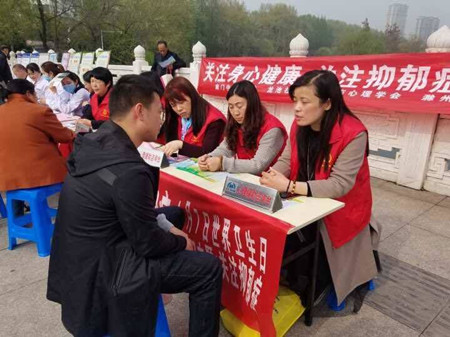 2017年4月7日,在世界卫生日来临之际,由滁州市心理学会主办的“关注心理健康,关注抑郁症”宣传活动在南湖公园“勿忘石”旁举行。我院心理协会指导老师程诚组织心协志愿者参加本次活动。参与此次活动的还有滁州市南门公共服务中心龙池社区、高巷社区、滁州市心理卫生协会等多个公益组织。