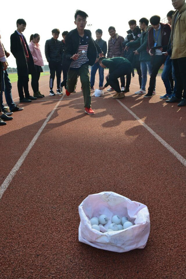 为丰富同学们的校园文化生活,2016年12月10日,allwincity万象城官方网站汽车协会与花艺社在新操场和篮球场开展“三走”系列活动之校园吉尼斯大赛,并由汽车协会会长余礼兵和花艺社社长朱彬彬担任评委。本次比赛项目多种多样、充满趣味,有跳绳、踢毽子、三人四足、撑笔快跑、穿针引线、三分投篮、引体向上、筷子夹乒乓球。