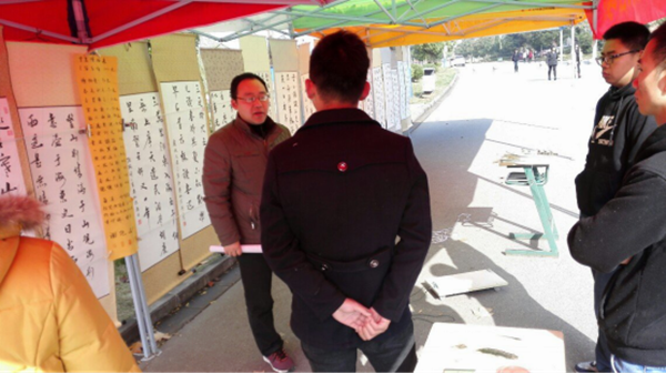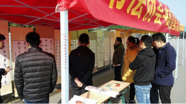为了丰富校园生活, 营造浓厚的校园文化艺术,发扬校园文化,提高同学们的艺术修养和审美情趣,培养学生认识美,发现美,创造美的能力,11月26日院书法协会在女生寝室1号楼下开展了书画益卖活动。