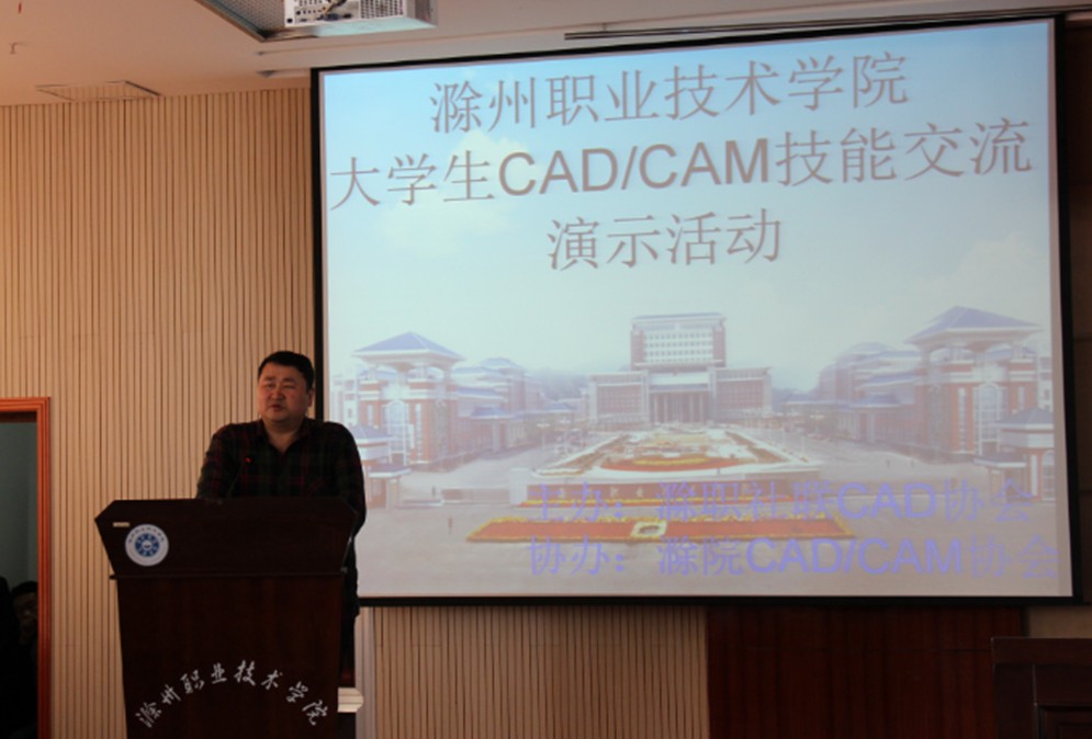 2014年4月24日中午12:30,大学生CAD/CAM技能交流演示活动在综合楼5楼报告厅开展,出席本次活动的领导和嘉宾有:院团委书记王蓓蓓、机电工程系副主任燕相松、机电工程系团总支书记陈琴、大学生社团联合会指导老师甄帅、CAD协会指导老师朱山川以及滁州学院CAD/CAM协会的各位代表和我院社联主席王涛。活动在机电工程系燕相松主任的致辞下拉开帷幕!