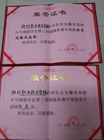为进一步加强我院学生乒乓运动球水平、丰富大学校园文化、加强与各高校乒协、俱乐部之间的交流,我院飞翔乒乓球协会参加了安徽省高校联合会第三届“超级杯”乒乓球比赛。