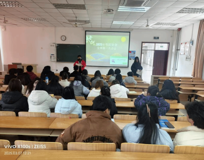 为进一步提升社团管理效能,增强组织内部凝聚力,2025年3月7日中午12点,书法协会于南街105教室举行了“一笔开新局:书法社团首次见面会”主题大会。本次会议由书法协会社长孙文豪主持,特别邀请了书法协会指导老师平燕发表演讲,协会全体成员共同参与。