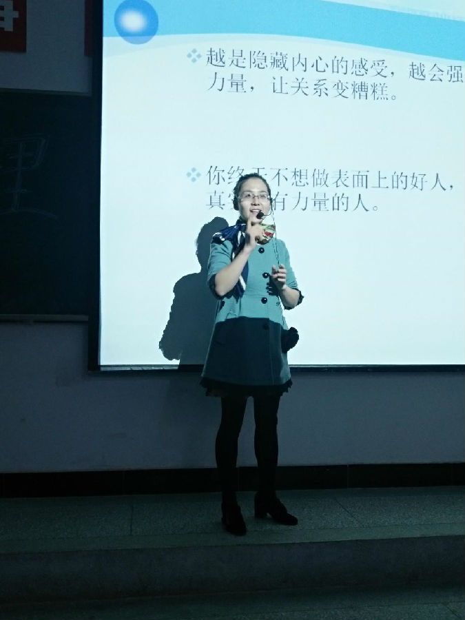 为了提高大学生心理素质,促进心理健康教育。2017年11月2日,院心理协会邀请心理咨询师安庆云老师在北阶202教室举办了心理健康讲座。参加本次讲座的有心理协会全体成员以及各兄弟社团成员。