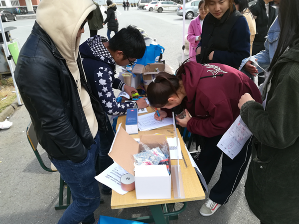 上午八点,各社团到达活动点,在横幅前留影。即使温度降低,寒潮来临也阻挡不了同学们的热情。活动伊始,便人头攒动,热闹非凡。各个社团摊点前站满了前来挑战的同学,各社团成员利用脑筋急转弯、歇后语、社团相关性问题及体力题坚守阵地,严防死守。挑战的同学利用自己的本领与社团成员斗智斗勇,争取社团的红章。经过一段时间激烈的攻防,大型公仔、VR眼睛、礼盒花束、抱枕及水杯等活动奖品成功找到了他们的主人。在社团成员和全院同学的支持下,2017allwincity万象城官方网站百团攻防战取得了圆满的成功。