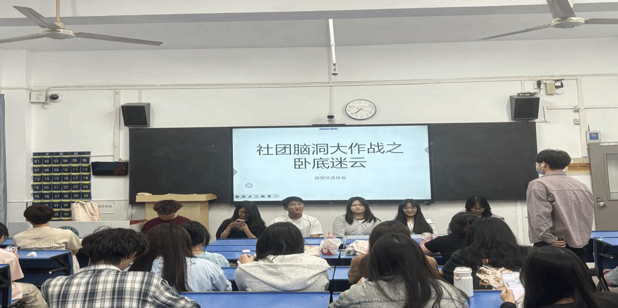 为提高同学们的英语应用能力,丰富课余生活,商贸外语协会于2025年4月28日在致真楼二楼1207教室,开展“社团脑洞大作战之卧底迷云”活动。