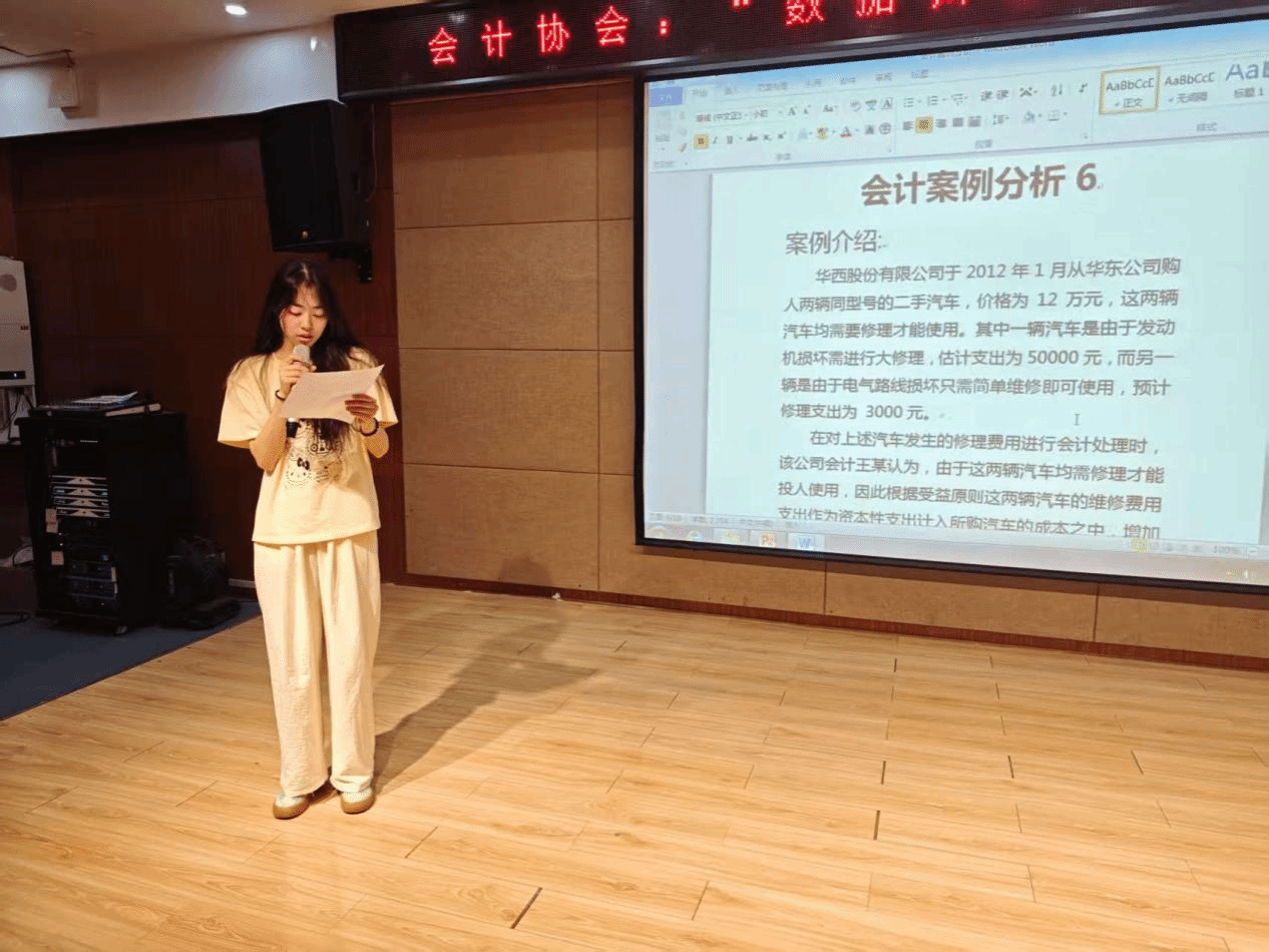 为提升会计实务操作能力、强化团队协作,会计协会于2025年5月9日在南阶203教室开展“数据辩错真,汇报显风华”专业技能汇报竞赛。