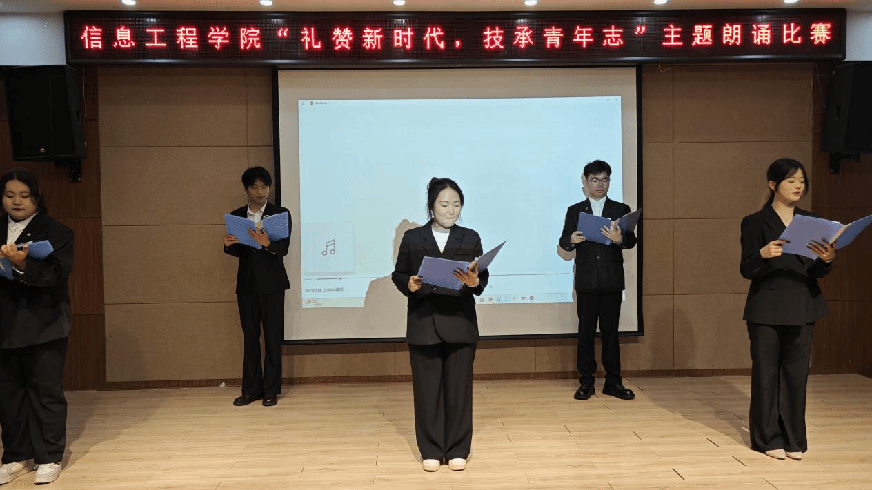 为弘扬新时代精神、传承中华优秀传统文化,2025年5月21日在南街203,广播站与信息工程学院联合举办了“礼赞新时代·技承青年志”主题朗诵比赛。活动吸引了全校各学院学生踊跃参与,经过激烈角逐,最终评选出一等奖1名、二等奖3名、三等奖6名及优秀奖若干。比赛现场气氛热烈,选手们以声传情、以文载道,展现了青年学子对新时代精神的深刻理解与对传统技艺的诚挚敬意。