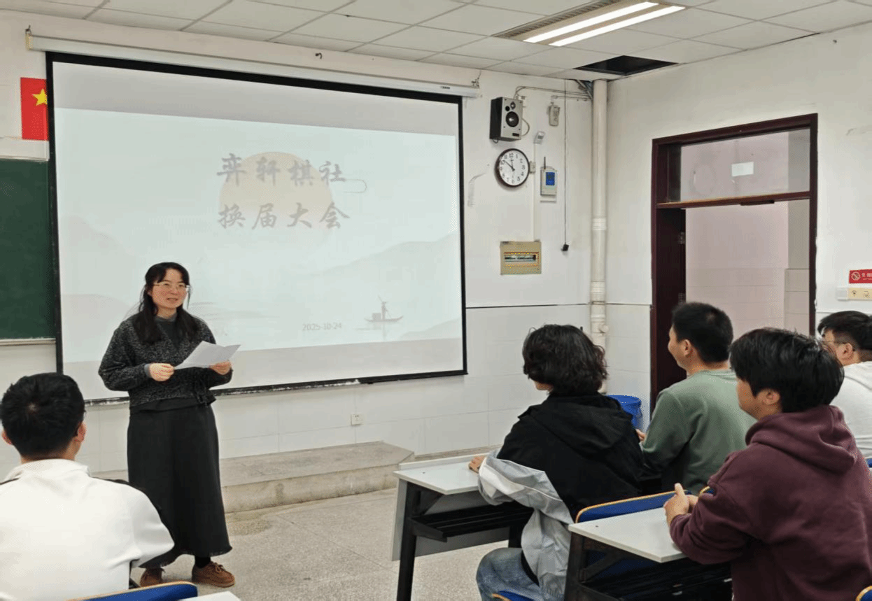 为加强弈轩棋社社团管理和组织架构建设,2025年10月24日,弈轩棋社在4119召开社团换届大会。全体社干、社团成员及社团指导老师董秀秀、姚美参加。