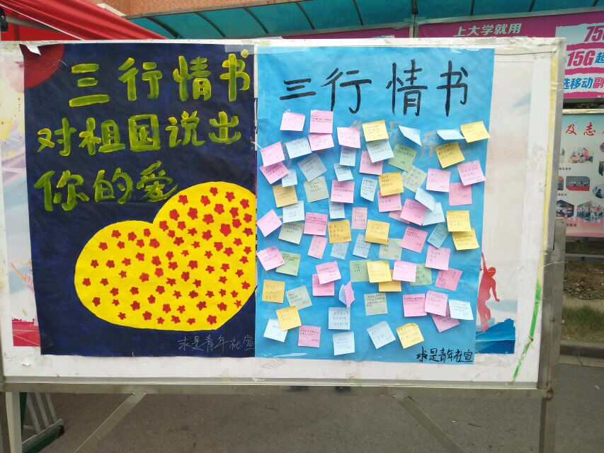 活动伊始,协会成员以感恩为主线一边向路过的同学宣传一些对祖国母亲的变化,同时也对同学们宣传浓浓的爱国之情。同学们也很积极参与这此活动,他们把对祖国母亲的感恩之情写在彩色便利贴上,亲自把对祖国的祝福贴在展板上并拍照留念。很快,展板上写满了同学们的祝福。