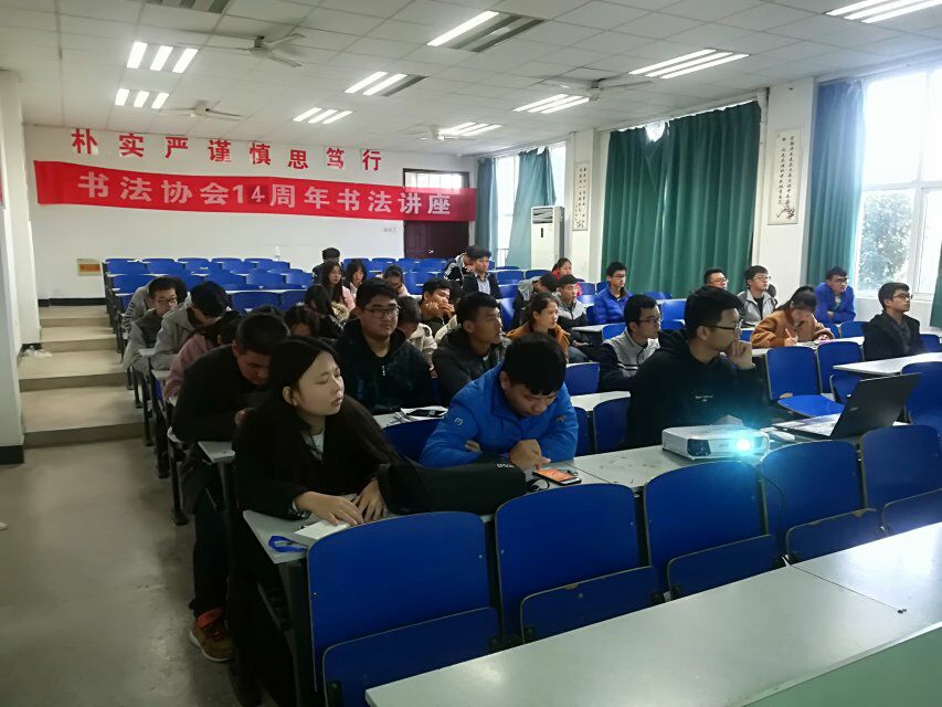 allwincity万象城官方网站书法协会十四周年之际,协会指导老师曹明于2017年11月24日中午在5102教室带领院书法协会全体成员开展了一次书法知识讲座。进行了一次不一样的周年庆活动,诠释了书法艺术的魅力。