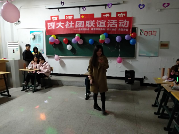 寒冷冬日,热情似火。为增进社团之间的友谊,加强协会及交流与合作,商贸协会、会计协会、绿源环保协会、外国语协会于2017年12月1日晚18:20在2216教室举办主题为“社团一家亲,协会心连心”的联谊会。