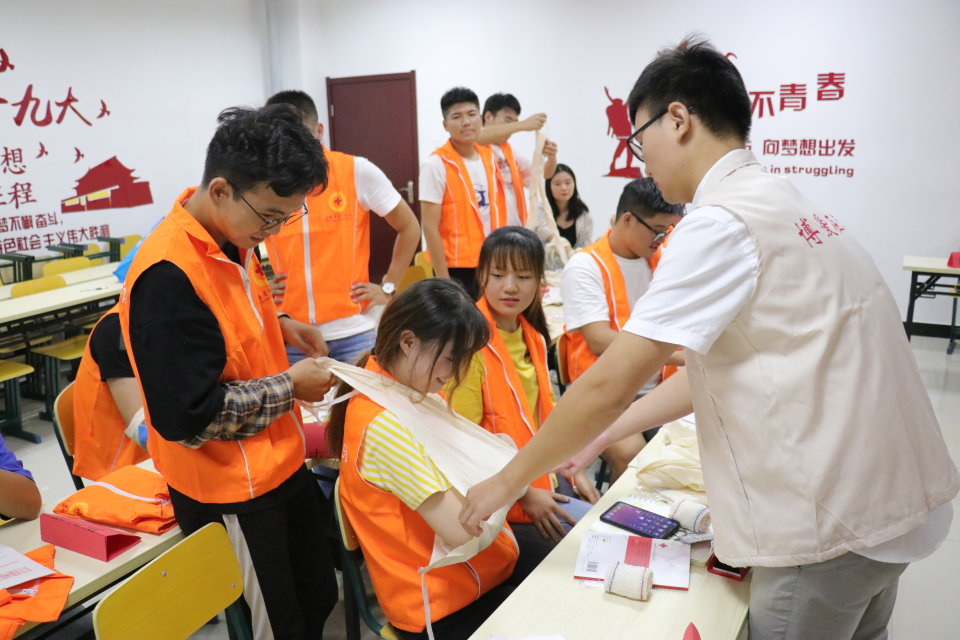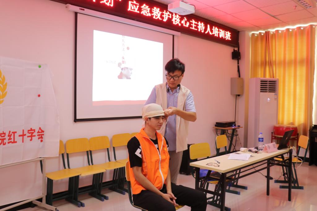 为推广普及应急救护的基本技能,提高万象城官网学生的自救互救意识和能力,传播“人人学急救,急救为人人”的红十字会人道救护理念,万象城官网红十字会于8月30日—9月1日在大学生活动中心328举办了2019年“益行计划”——“益”起学急救应急救护核心主持人培训班,救护员李朋老师为来自各个系部红十字分会的30名红十字会成员进行了此次培训。
