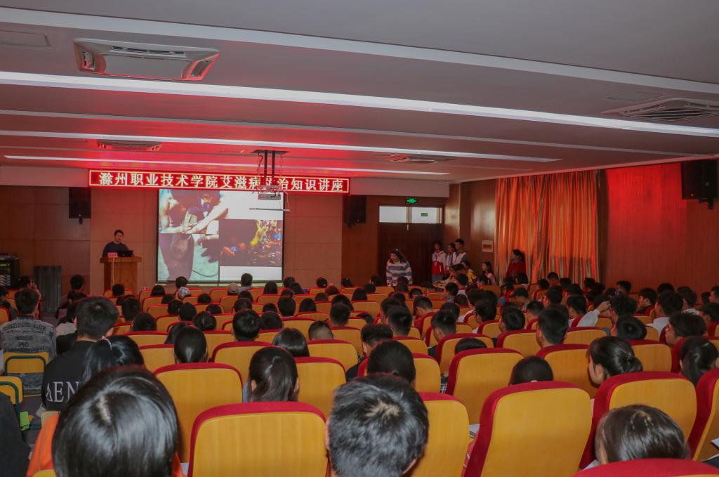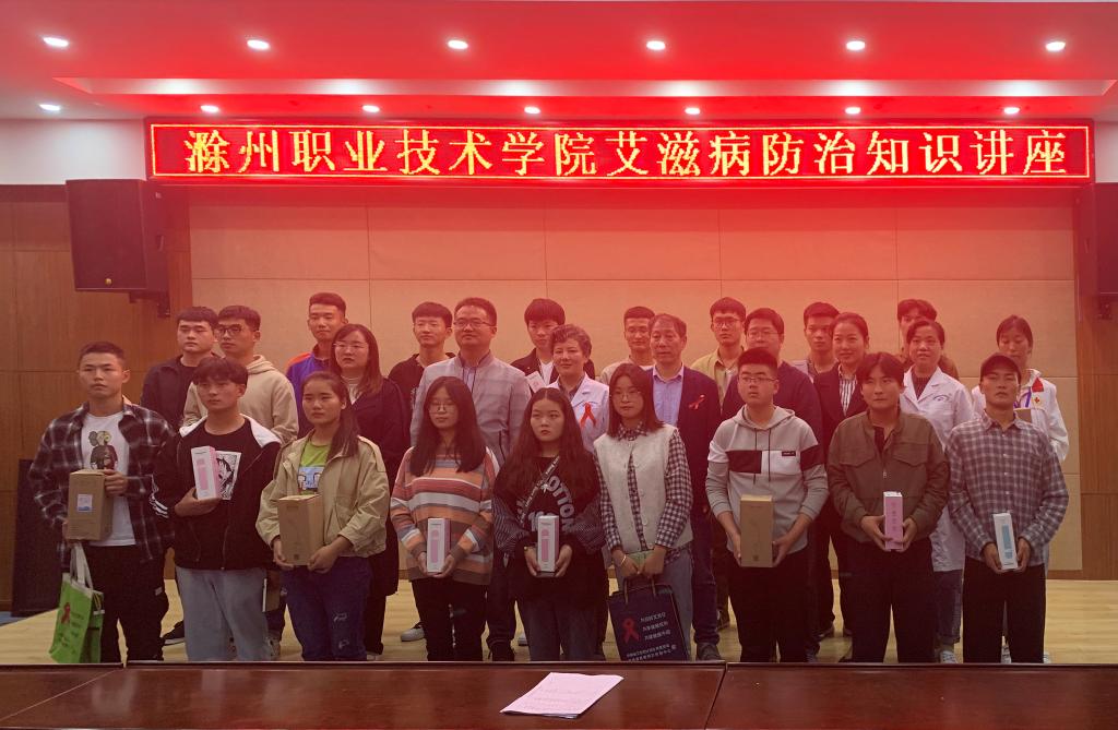 讲座上,三位老师通过PPT讲述生动的案例、详细的数据,阐述了目前安徽省防控艾滋病的严峻形势,重点介绍了滁州市大中专学生中艾滋病的情况,并对艾滋病的基本特征、艾滋病的传播途径及如何有效防控进行详细讲解。希望同学们能够掌握预防艾滋病的知识并增强了自我保护意识,每位同学从自身做起,洁身自爱,增强自我保护意识,包容艾滋病患病人群,携手共同遏制艾滋。讲座的最后黄老师组织在场同学进行有奖问答环节,同学们踊跃参加,每一位参加讲座的同学都领取了“防艾”宣传小册子、小礼物。