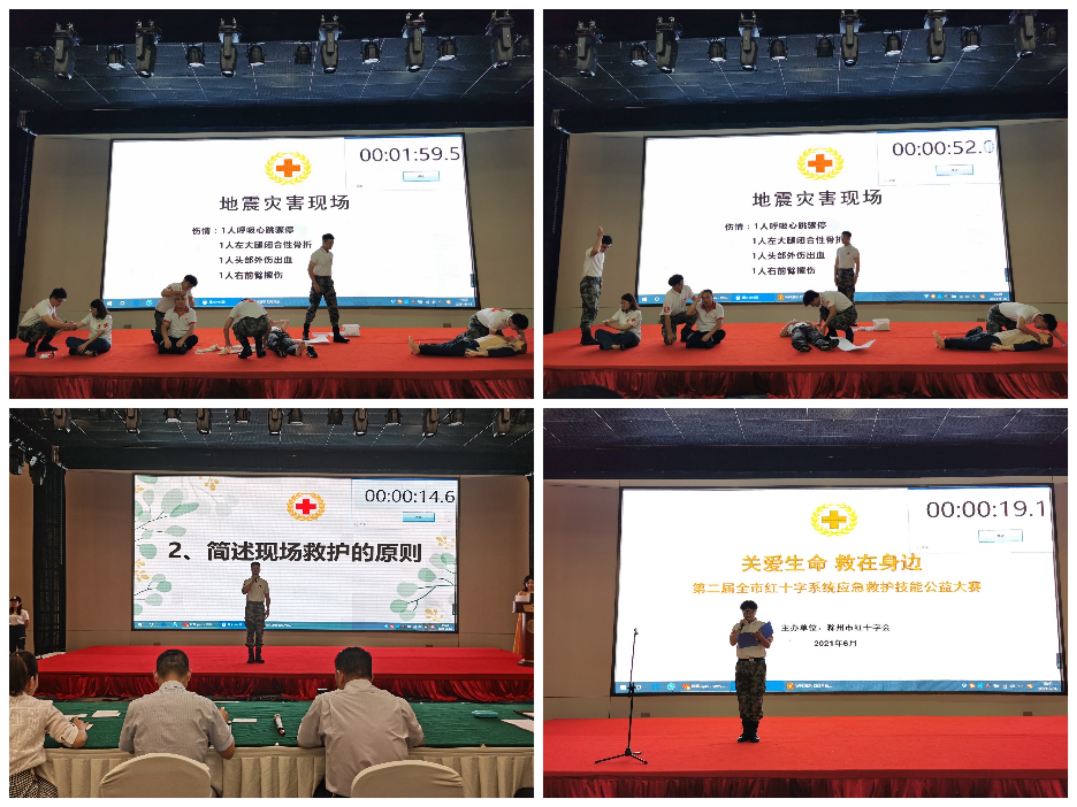 此次比赛由全市各县市区红十字会、学校红十字会、救援队等初步选拔并组队,最终由5支最优秀队伍的35名选手进入决赛。比赛分救护演讲、理论答题、场景演练三项内容,其中救护演讲和理论答题由团队一名成员作答,场景演练由团队集体上台演练,每项内容分数不同,三项内容的得分总和为最终成绩。