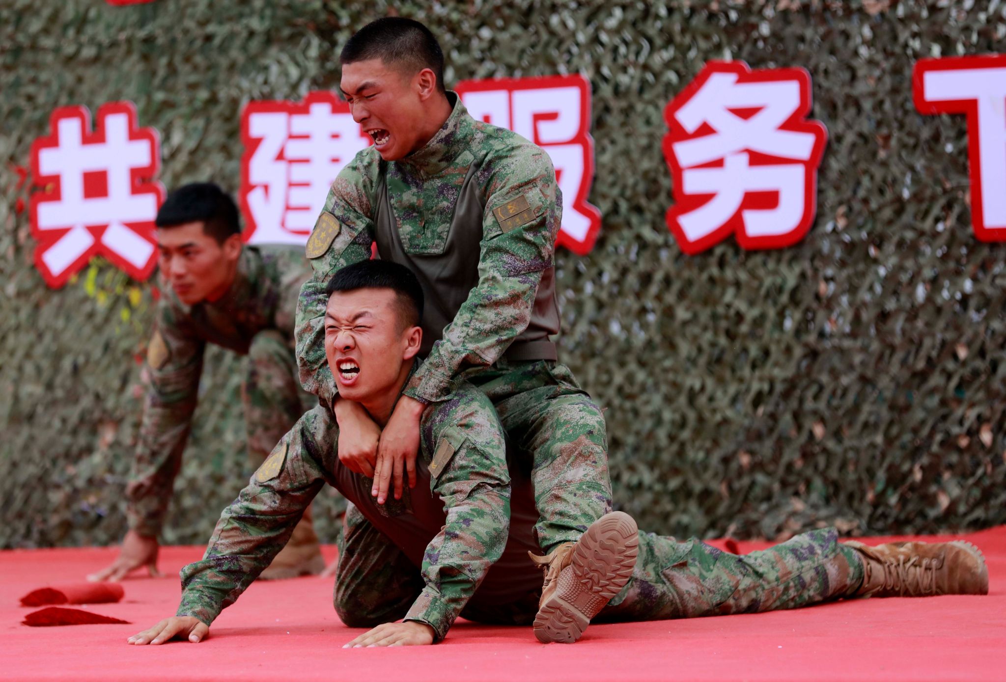 首先由大学生艺术团准备的舞蹈《pingpong》拉开了演出的帷幕。本次演出节目内容丰富多彩,有活力四射的舞蹈《飞天》、《千年的祈祷》、《我和我的祖国》;有悠扬婉转的乐器演奏《万疆》;有经典的歌曲演唱《海阔天空》、《你的姑娘》;还有精彩的武术表演以及优美动听的合唱《有我》。精彩的演出点燃了现场官兵的热情,掌声不断、点赞叫好。