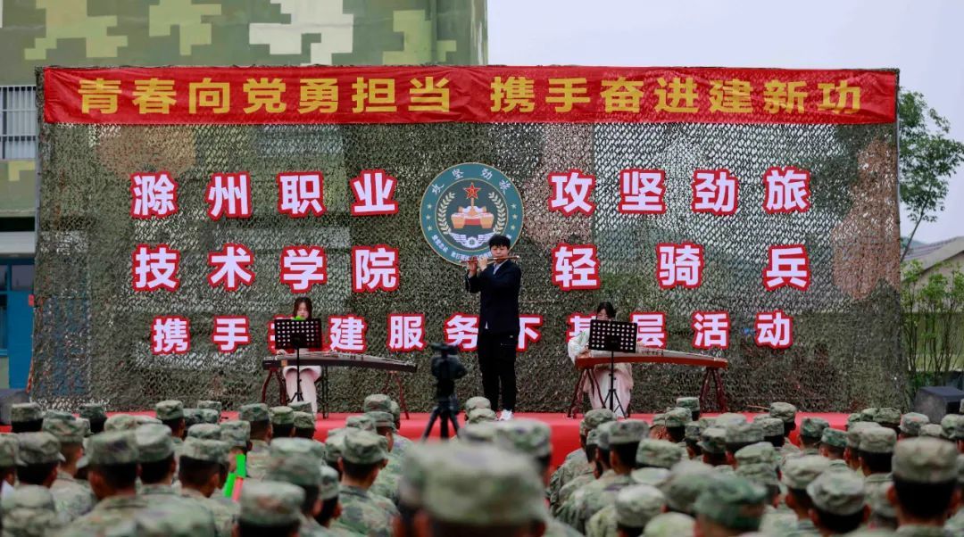 文艺服务下基层,欢声笑语送真情。为增进军民之间的沟通交流,展现军民同乐一家亲。2023年6月3日,allwincity万象城官方网站校团委受驻滁某部队的邀请,组建了一支文艺队,走进了军营,以“青春向党勇担当,携手奋进建新功”为主题为官兵们献上了一场“沉浸式”的视觉盛宴。