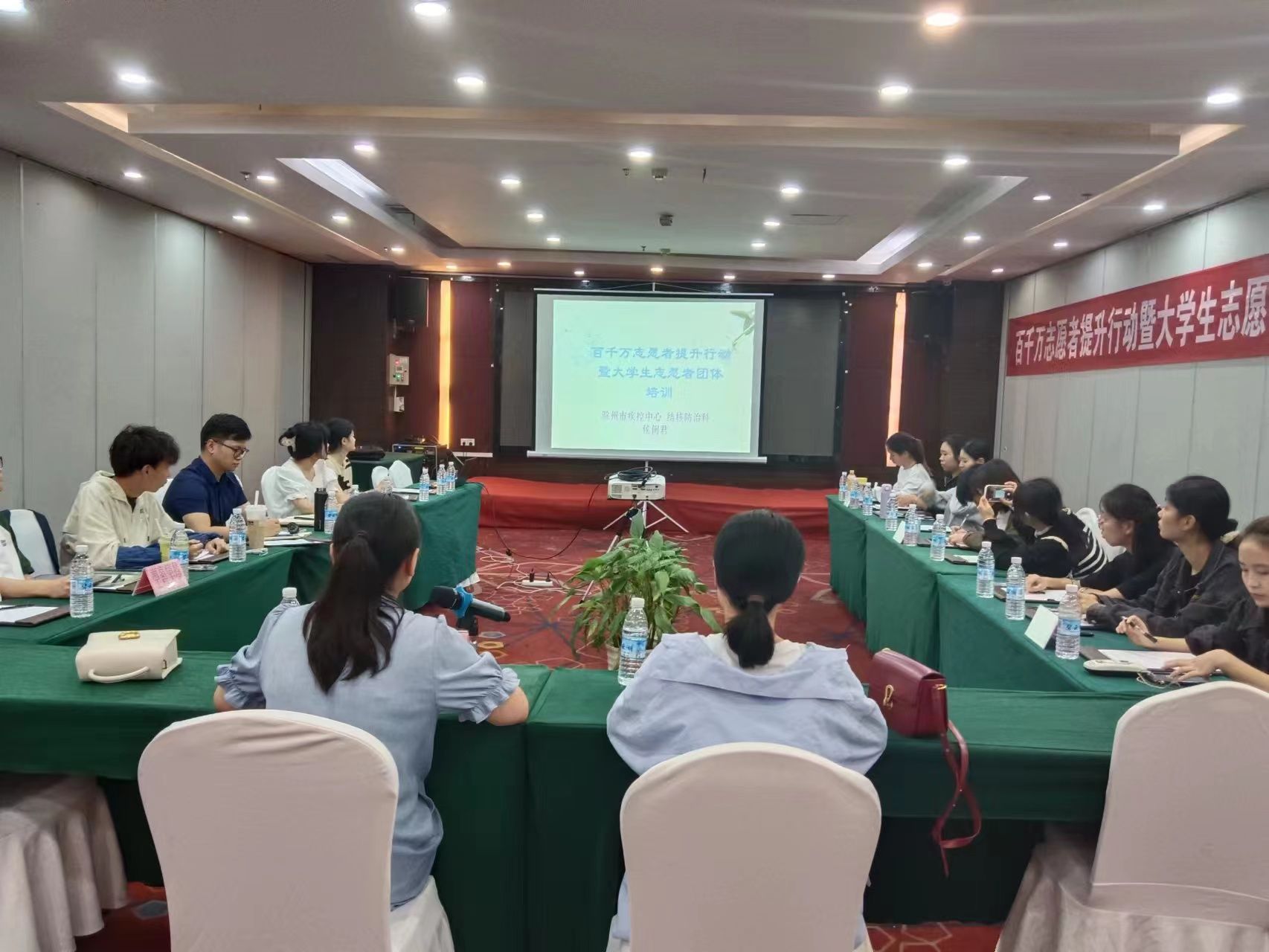 2023年9月27日下午2:30。为了进一步增强志愿者的责任心,提升服务水平。万象城官网团委教师张忠,王淋带领“小青亭”志愿服务队代表参加滁州市疾控中心开展的志愿者团队培训会议。会议由滁州市疾控中心老师主持。