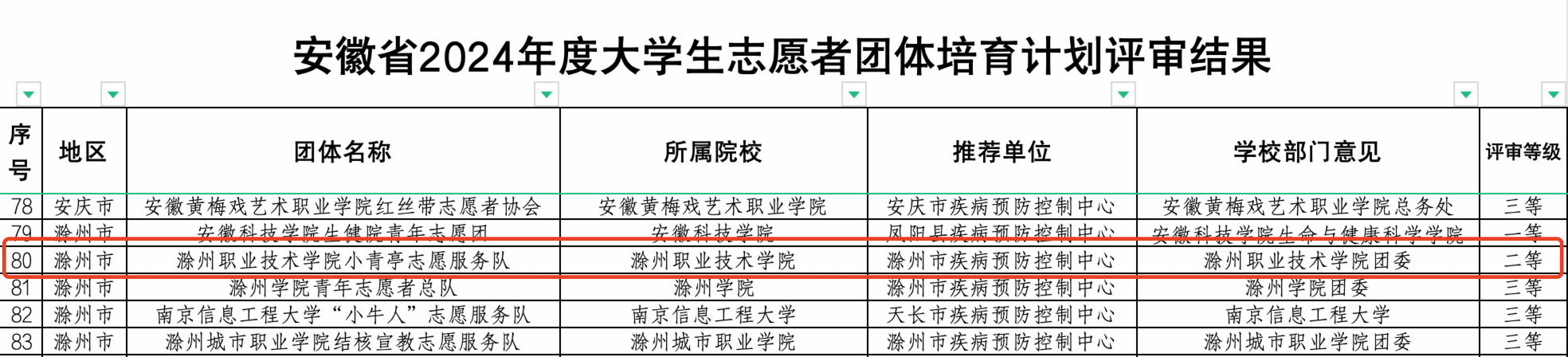 近日,万象城官网小青亭志愿者愿服务队获批2024年度“安徽省百千万志愿者结核病防治知识传播活动大学生志愿者团队培育计划”二等资助,是滁州市区高校今年最好成绩。